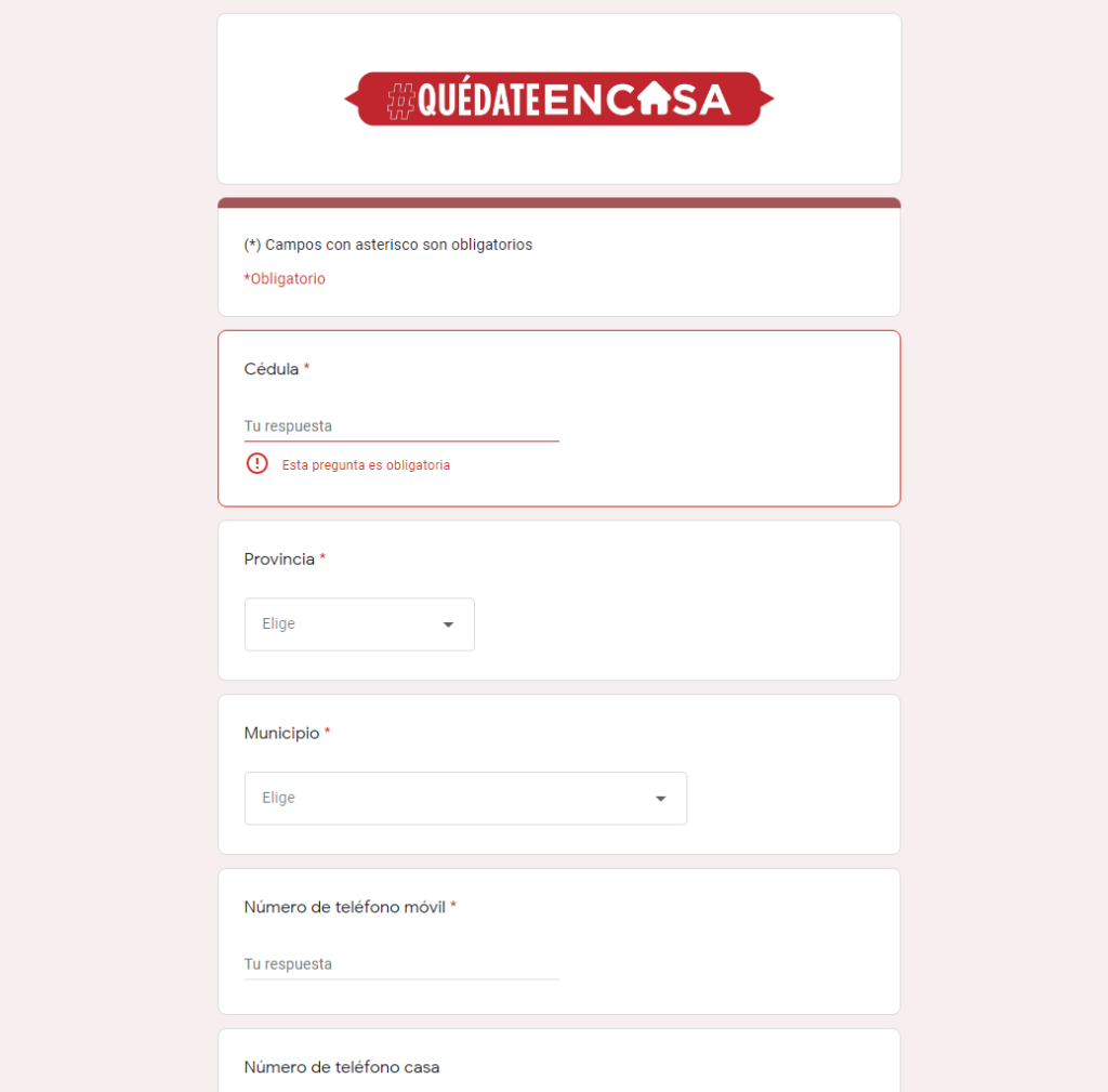 Recientemente la página web www.quedateencasa.gob.do adiciono un icono donde los usuarios podrán aplicar online al programa “Quédate en casa”, registrándose y llenando un formulario con los datos personales y posteriormente serán evaluados por el departamento correspondiente.